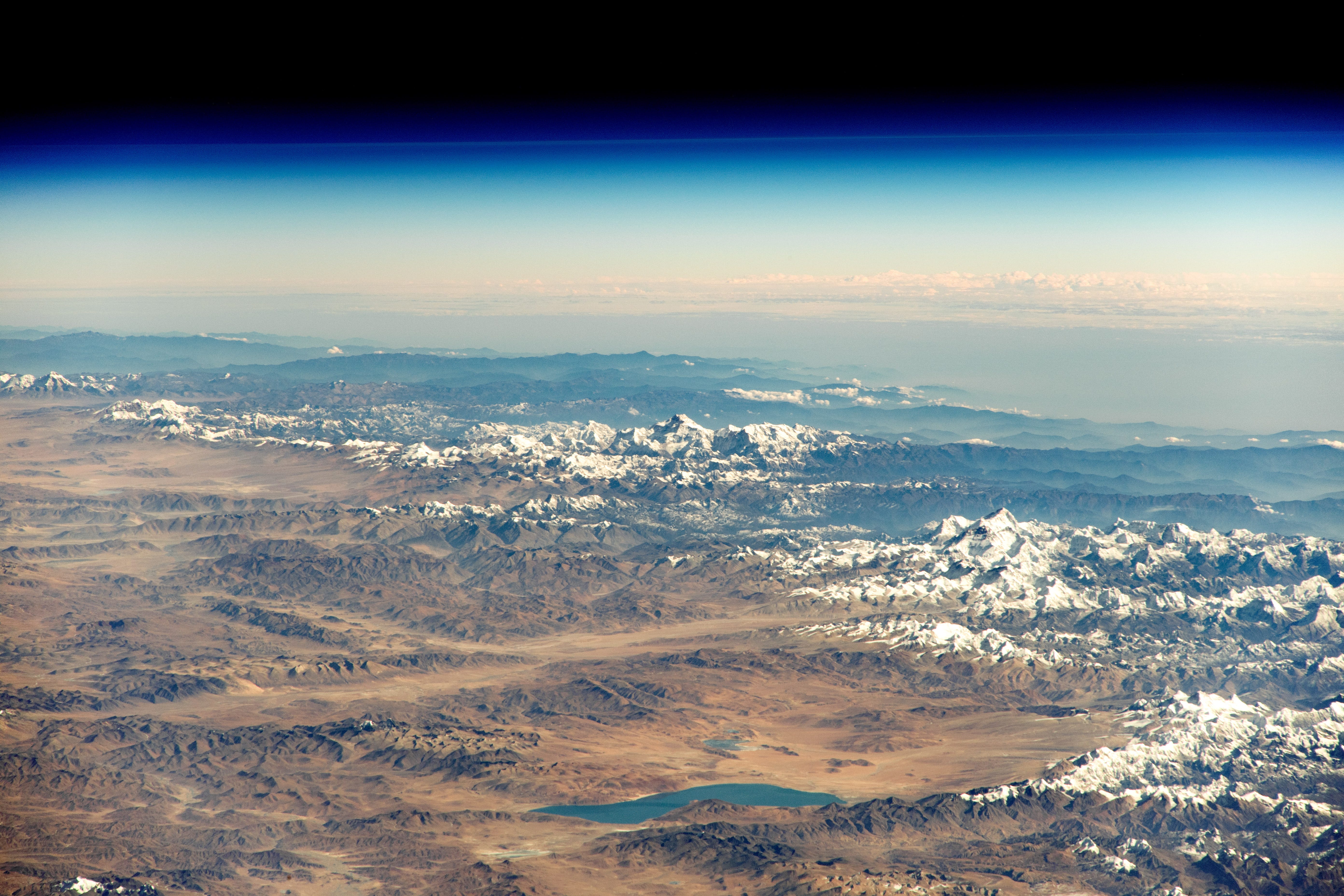 This amazing photo of the Himalayas was captured by an astronaut from the International Space Station. You can see the peaks of Kanchenjunga (left) and Everest (right).